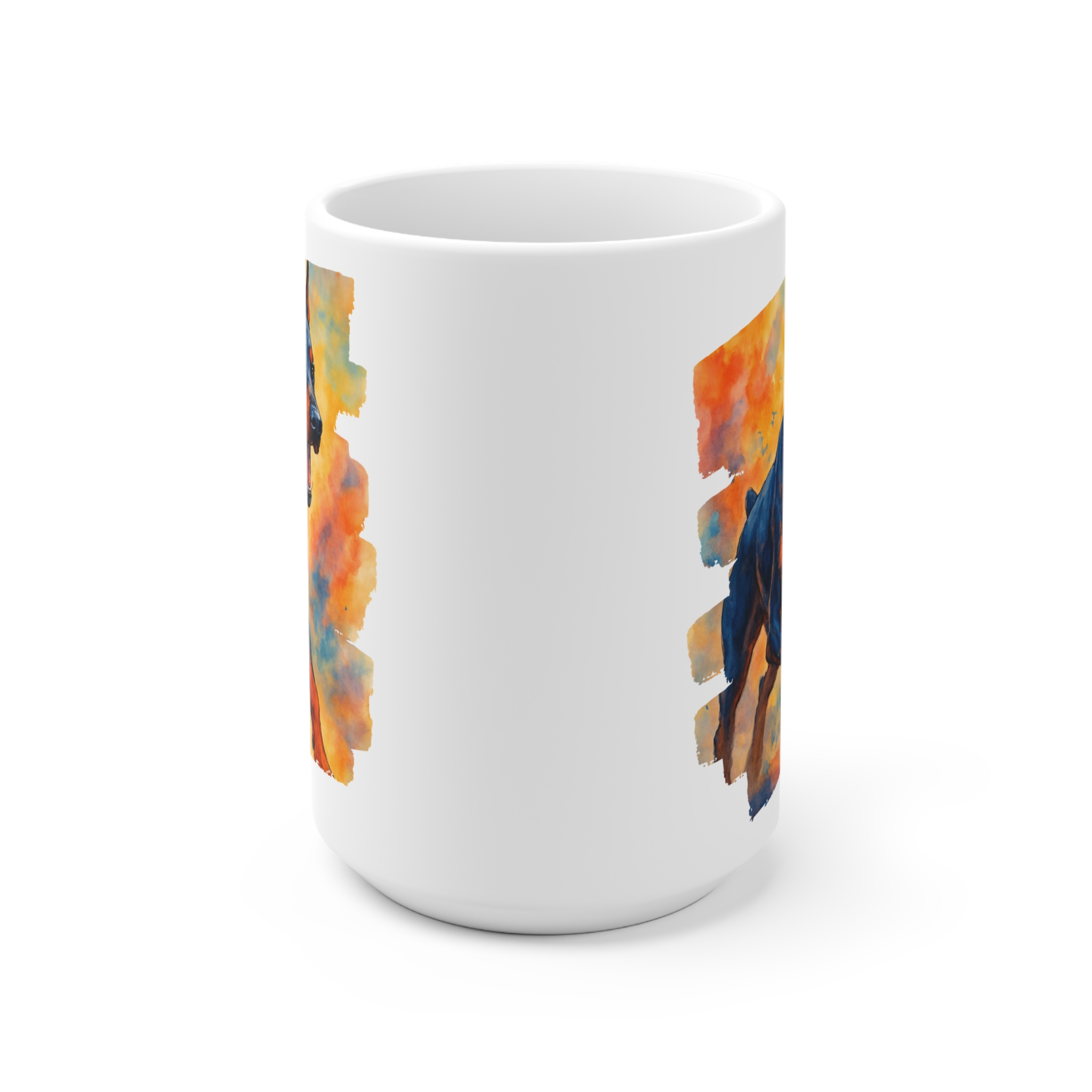 Bold Brave Doberman Ceramic Mug — Charging Protective Watercolor Design