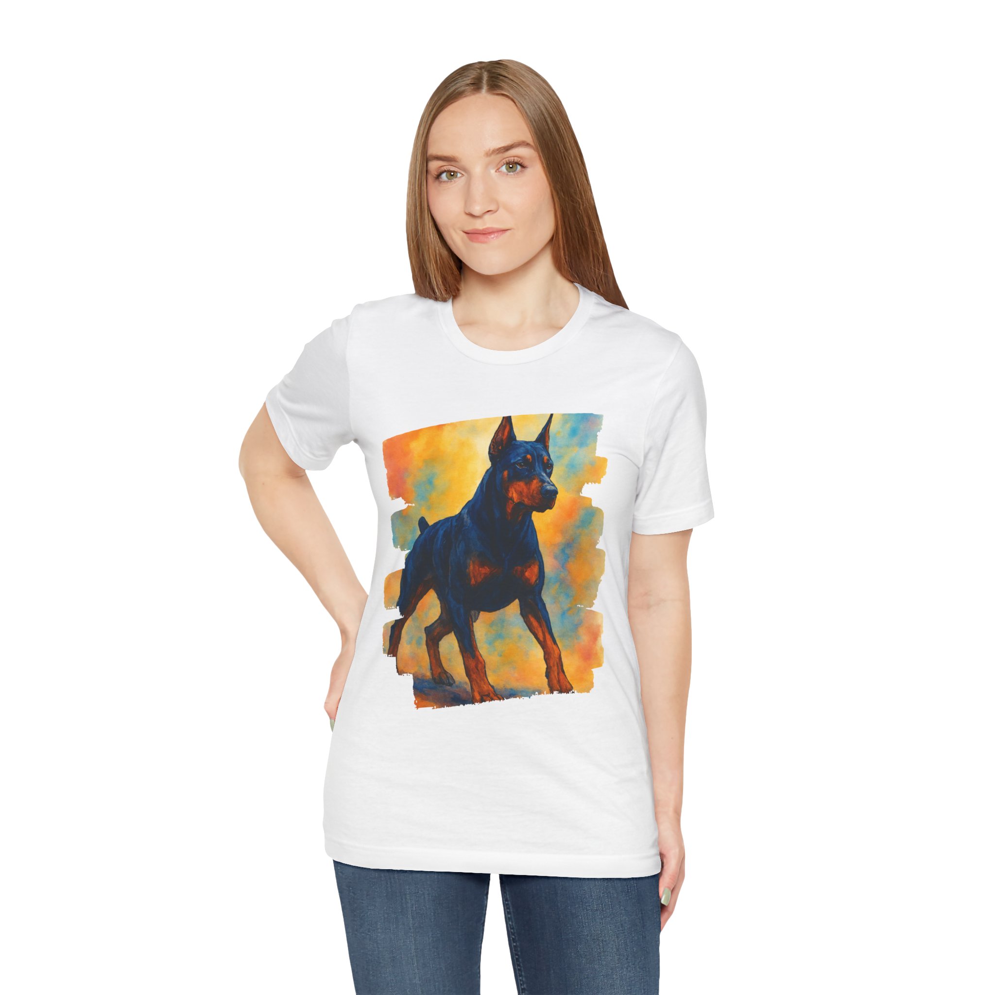 Doberman Art Tee — Watercolor Dog Graphic T-Shirt